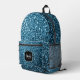 Bébé bleu faux parties scintillant scintille Monogramme imprimé sac à dos. Sacoche d'accessoires de mode cool pour elle. De belles parties scintillant brillantes bleu clair brillant girly brillent design. Photo de scintilles, pas de vraie parties scintillant ! Créez un sac à dos unique et personnalisé avec une touche personnalisée ! Monogramme moderne avec votre initiale et votre nom pour ce flair personnel supplémentaire.