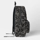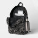 Modèle de sac à dos avec un motif de roses noires et blanches et une étiquette à personnaliser.