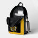 Sac à dos noir et or avec graphismes blanc et or avec "#COMOCOU COLUMBIA MISSOURS CENTRE DE L'UNIVERS ALLEZ DE L'AVANT VOUS POUVEZ LE FAIRE" avec logo Y-NOT-ME au centre. Columbia, Missouri est une ville en pleine ascension. Cette conception est un cri à Columbia.