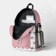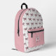 Adorable pink bow pattern adorns this stylish backpack, perfect for school or everyday adventures. The soft pink hue and delicate bow design exude a charming and feminine vibe, while the added monogram option makes it uniquely yours. This backpack features a spacious main compartment, a front zippered pocket for easy access to essentials, and side mesh pockets for water bottles or umbrellas. It's a practical yet fashionable accessory for students and fashion-forward individuals alike, bringing a touch of sweetness to your daily routine. Let this charming bow backpack be your go-to companion for carrying your books, gadgets, and personal items in style.