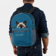 Ce mignon sac à dos a l'image d'un chat siamois avec les yeux bleus qui regardent. Il y a des empreintes de pattes noirs sur les côtés bleus et sur le dessus du sac. La poche ci-dessous contient du texte en argent. Vous pouvez modifier le texte pour personnaliser le sac, ou dire n'importe quoi d'autre que vous aimeriez mieux.