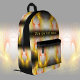 Ce sac à dos présente un design fractal dans le jaune vif combiné à l'orange sur l'arrière - plan noir rayé - une oeuvre moderne, délicate, numérique. Texte personnalisé. Un sac à dos unique pour tous !