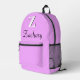 Un sac à dos monogramme personnalisé conçu dans un style élégant et moderne. Cet élégant sac à dos Rich Brilliant Lavender est doté d'un "Z" initial blanc gras avec une ombre noire et un nom personnalisable en caractères de script noir. Parfait pour ajouter une touche de sophistication et de personnalisation à votre style quotidien. Idéal pour les sorties scolaires, professionnelles ou décontractées, ce sac à dos combine fonctionnalité et design chic qui se démarque.