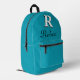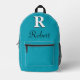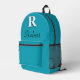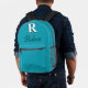 Un sac à dos monogramme personnalisé conçu dans un style élégant et moderne. Cet élégant sac à dos bleu-vert est doté d'un "R" initial blanc gras avec une ombre noire et un nom personnalisable en caractères de script noir. Parfait pour ajouter une touche de sophistication et de personnalisation à votre style quotidien. Idéal pour les sorties scolaires, professionnelles ou décontractées, ce sac à dos combine fonctionnalité et design chic qui se démarque.