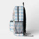 Vintage Alice au pays des merveilles sac à dos personnage conte de fées. Le design comprend des personnages Alice in Wonderland, le chapeau fou, Alice, le lapin blanc, les fleurs, et des éléments de fête de thé conte de fées motif conçu sur l'avant avec les côtés et la poche avant conçu avec un élégant motif en damier bleu et blanc. Personnalisez avec deux monogrammes à deux lettres affichés dans notre design de cime de couronne cardiaque. Conçu par Moodthologie.