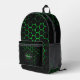 Géométrie en nid d'abeille verte Monogramme Sac à dos imprimé noir. Personnalisez avec votre initiale et votre nom. Sacs scolaires cool uniques pour garçons et filles. Clair vert néon brillant brillant élégant géométrique lignes hexagone noir lignes motif graphique. Cool gris, noir et vert clair design Accessoires pour personnes audacieuses.