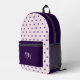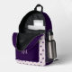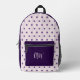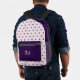 Le sac à dos imprimé Initials Violet & Blush Stripes - Purple Blooms fait partie de la collection "Stripes and Flowers : Bain, Plage, Yoga, Travel". La collection comprend tout ce qui a trait à votre salle de bain, la baignade à la piscine ou à la plage, la détente par la journalisation, faire du yoga, jouer aux cartes ou frisbee. Et, bien sûr, aller à la plage avec votre sac en duffel préféré, sac de toilettes assortis, et coques électroniques. Connectez les cartes d'invitation virtuelles. Le design ludique est composé de rayures violettes avec alternance de rangées de fleurs violettes. La poche avant contient vos initiales en script. Insérez vos initiales pour en faire la vôtre. Pour toute demande de design sur mesure ou pour toute assistance en matière de personnalisation, veuillez nous contacter à l'adresse info@KBMD3signs.com .