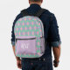 Ce sac à dos de style moderne lavande, Jacquard rose et vert et rayures est doté de motifs coordonnés et d'initiales monogrammées. C'est un design traditionnel à motifs avec une jolie mise à jour girly qui serait mignon pour une fille de porter son école ou son équipement sportif. Prenez-en une pour retourner à l'école, ou en tant qu'ajout féminin pour qu'elle puisse l'utiliser pour voyager, camper, randonnée, ou n'importe où vous auriez besoin de transporter des fournitures. Idéal pour les enfants, les adolescents, une fille ado ou les adultes. Ajoutez un monogramme ou une seule initiale pour personnaliser le design, mais aussi pour préserver sa vie privée afin que son nom complet ne soit pas visible aux inconnus.