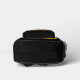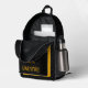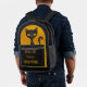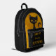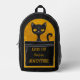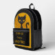 Drôle sac à dos de chat avec un chaton noir mignon qui attend avec impatience une aventure. L'arrière - plan est un motif ocher avec du faux cuir noir.