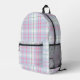 Sac À Dos Imprimé Jolie fille Pastel Plaid Check Monogramme Initiale