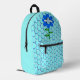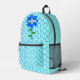 Ce somptueux sac à dos est doté d'une image graphique d'un joli bourdon bleu avec des rayures bleu vif, des yeux noirs, des antennes bleues et des pattes noires. Il possède de jolies ailes bleues et blanches. L'abeille est assise au milieu d'un joli tournesol bleu. La fleur a une tige verte et trois feuilles. Le message "Bee Day boy" apparaît sur les trois feuilles. L'arrière - plan est composé d'un motif peigne bleu pâle.