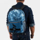 Sac À Dos Imprimé Loup hurlant abstrait bleu noir Monogramme
