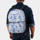 Des oiseaux fantaisistes volent parmi les branches fleuries d'une toile de jouy bleue sur ce beau sac à dos.
