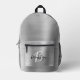 Ce sac à dos personnalisé est doté d'un monogramme et d'un prénom en écriture moderne en noir et blanc sur un élégant arrière - plan en métal brossé faux argent.