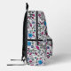 Monogrammed Joyful Backpack for Back to School or Cityscape - Flower Pattern blue Swirl Berry on a white Background Design is hand drawn and shows a seamless repeating floral pattern with green leaves and round orange berries. The main colors in this Pattern are, blue, magenta, mauve, pink, black, white.