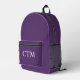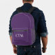 Le sac à dos violet contient votre monogramme dans une police blanche cool. Ajoutez vos initiales dans la barre latérale.