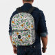 Sac à dos Joyeux Monogrammé pour le retour à l'école ou à la ville - Motif de fleurs orange Swirl Berry sur un Arrière - plan blanc Design est dessiné à la main et montre un motif floral répétitif sans couture avec feuilles verts et baies rondes orange. Les couleurs principales dans ce Motif sont, vert, jaune, orange, blanc Vous pouvez customiser vos initiales - (MW) - à votre goût dans la section Personnaliser.