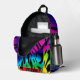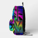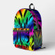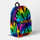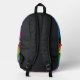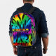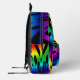 Design abstrait sauvage dans les nuances profondes d'un arc-en-ciel plus plus - rouge, blues, jaunes, verts, roses, des touches de violet, le tout accentué de noir. La personne qui porte ce sac à dos devrait vraiment se démarquer dans la foule !