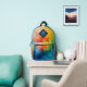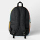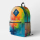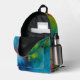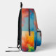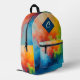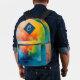 Les peintures bleues, vertes et oranges se combinent pour créer un design abstrait magnifique et coloré sur ce sac à dos.