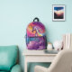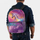 Entrez dans un monde d'imaginaires avec cette licorne scintillante magique flottant dans un ciel coloré de couleur crémeux au coucher du soleil, rempli de nuages de bonbons en coton violet et rose et d'étincelles cosmiques. Cette impression rêveuse fait un cadeau magique pour les amoureux de la licorne, les rêveurs, ou toute personne qui aime l'art lunatique. Sac à dos unique pour les filles et les garçons de tout âge (y compris les adultes !). Magique pour usage scolaire ou personnel.
