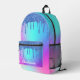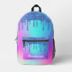 Bleu parties scintillant drip sac à dos école avec cool fluorescent, rose néon, violet et bleu clair arrière - plan. Personnalisez-le en ajoutant votre nom. Grand cadeau d'anniversaire ou de Noël pour les femmes et les filles.