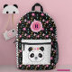Un joli visage d'ours de panda avec des motifs coordonnés, dont un motif floral noir et rose, des rayures noires et blanches et un motif triangle noir et blanc décorent cet adorable sac à dos pour filles. Personnalisez-le avec votre Monogram initial. Si amusant pour retourner à l'école, ou à tout moment ! Conçu pour vous par Blackberry Boulevard.
