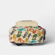 Ce sac à dos personnalisé a un thème de planche à roulettes. Il présente des illustrations de skateboarders en rouge foncé, orange, jaune moutarde, vert, bleu turquoise et gris charbon de bois contre un arrière - plan à faux grain de bois.