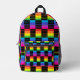 Go back to school in style with this rainbow plaid print backpack. Fun book bag features a cool abstract plaid pattern in all the colors of the rainbow and black, with black details. Original digital artwork by Buttercup's Clothing and Collectables.