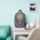 Sac À Dos Imprimé Rétro Mandala Orange Bleu et Jaune