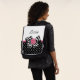 Apportez votre personnalité féminine avec ce mignon sac à dos motif à pois noir et blanc avec un arc en chevron noir et blanc tendance et un rose à ruban rose chic. Vous pouvez personnaliser ce rétro rose et noir à la conception moderne en ajoutant le nom de votre ado fille. Image imprimée plate, PAS le ruban de rosette réel et l'arc.