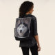 Cette peinture numérique représente un Husky sibérien debout sur la neige, sa fourrure brillant de reflets glacés tandis que le paysage hivernal s'étend sans fin derrière lui. Les yeux expressifs du chien attirent l’attention du spectateur.