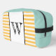 Améliorez vos besoins de voyage avec ce sac de toilette chic et personnalisable. Doté de rayures jaunes et blanches éclatantes avec garniture aqua accrocheuse et fermeture éclair noire, ce sac polyester durable est à la fois élégant et fonctionnel. L'intérieur, revêtu de noir, comprend deux poches pour une organisation pratique. Personnalisez l'avant et le dos avec n'importe quelle lettre de votre choix, ce qui en fait un cadeau unique et réfléchi pour toute occasion.