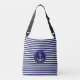 Ancre nautique sur le sac de carrosserie à rayures bleu et blanc.