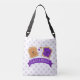Le Sac fourre-tout Cute Peanut Butter and Jelly, conçu par Enchantfancy Design Company, comprend deux tranches de pain, l'une de beurre d'arachide et l'autre de gelée de raisin violet, surmontée de visages souriants et accentuée par les coeurs et les pois.