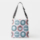 A bold and modern dentistry design featuring a big tooth, a floss dispenser and toothbrushes with toothpaste. Rouge, gray, bleu et blanc.
