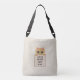 Beau sac beige avec un chat mignon sur une poche et un message: LA VIE EST MEILLEURE AVEC UN CHAT. Le texte peut être personnalisé !