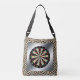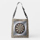 Sur le gris est un tableau de fléchettes avec une fléchette dans le bullseye entouré d'une bordure de dartboard