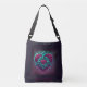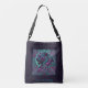 Ce sac a été créé pour montrer mes deux magasins Zazzle... Artisanat de chat pourpre et design de tigre Turquoise.