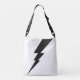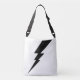 Black Flash Lightning Bolt Crossbody Bag. Logo simple tunderbolt noir sur arrière - plan blanc.