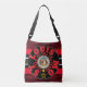Sac carrossable noir avec conception de la dent-des-reins rouge sur l'avant et noir, blanc, or et rouge cercles concentriques et "ST. LOUIS, MISSOURI CENTRE DE L'UNIVERS" et le Grand Sceau du Missouri au centre et "ST. LOUIS, MISSOURI" en haut avec Y-NOT-ME et Y-NOT-ME sur le dos. Ce design est un cri de la grande brasserie St. Louis, Missouri.