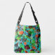 Un abstrait animé dans les tons turquoise, turquoise, orange, rouge orange, noir, blanc, or métallique et les tons verts.