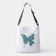 Papillon artistique, fictif, vert, détaillé avec plumes de paon vert, beau, vert sur arrière - plan blanc.
