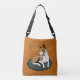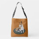 Ce design simple et moderne d'un beau chien dans son lit aurait l'air parfait dans une maison moderne. Il dispose d'un arrière - plan orange brûlé avec un lit turquoise foncé. Le chien, un podenco est en blanc et marron muet.