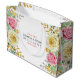 Bouquet floral élégant avec roses rose pâle et jaune, arrière - plan blanc, et personnalisable texte modèle mariage design sac cadeau.