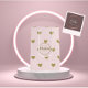 Un sac cadeau élégant et minimaliste orné d'une lettre de monogramme (qui peut être l'initiale de votre nom ou logo) et d'un nom sur des cœurs dorés rose clair. Idéal comme sac cadeau pour tout type de fête, que ce soit un anniversaire ou une occasion professionnelle !