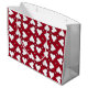 Un sac cadeau personnalisé qui présente des coeurs blancs sur un arrière - plan rouge.