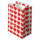 Coeurs avec un look tridimensionnel, en rouge. Plusieurs copies recouvrent le sac en lignes horizontales et verticales.