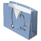 Conception unique de sacs-cadeaux sur le thème médical, avec gommage à l'infirmière bleue, stéthoscope et illustration au couteau de l'armée suisse. Ajoutez du texte pour customiser votre infirmière, votre médecin ou votre assistant médical favori.