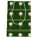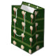 Sac cadeau de Noël de golf avec ornement de balle de golf de Noël sur un tee rayé rouge.