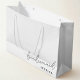 Sac cadeau de demoiselle d'honneur personnalisé avec un design noir et blanc moderne.
